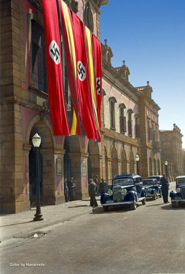 Una foto que fa mal. Inauguració d'una exposició d'arquitectura alemanya a l'edifici del @parlamentcat , que en aquell moment era al Palau d' Art Modern de la Ciutadella, l'octubre de 1942. Fons Brangulí